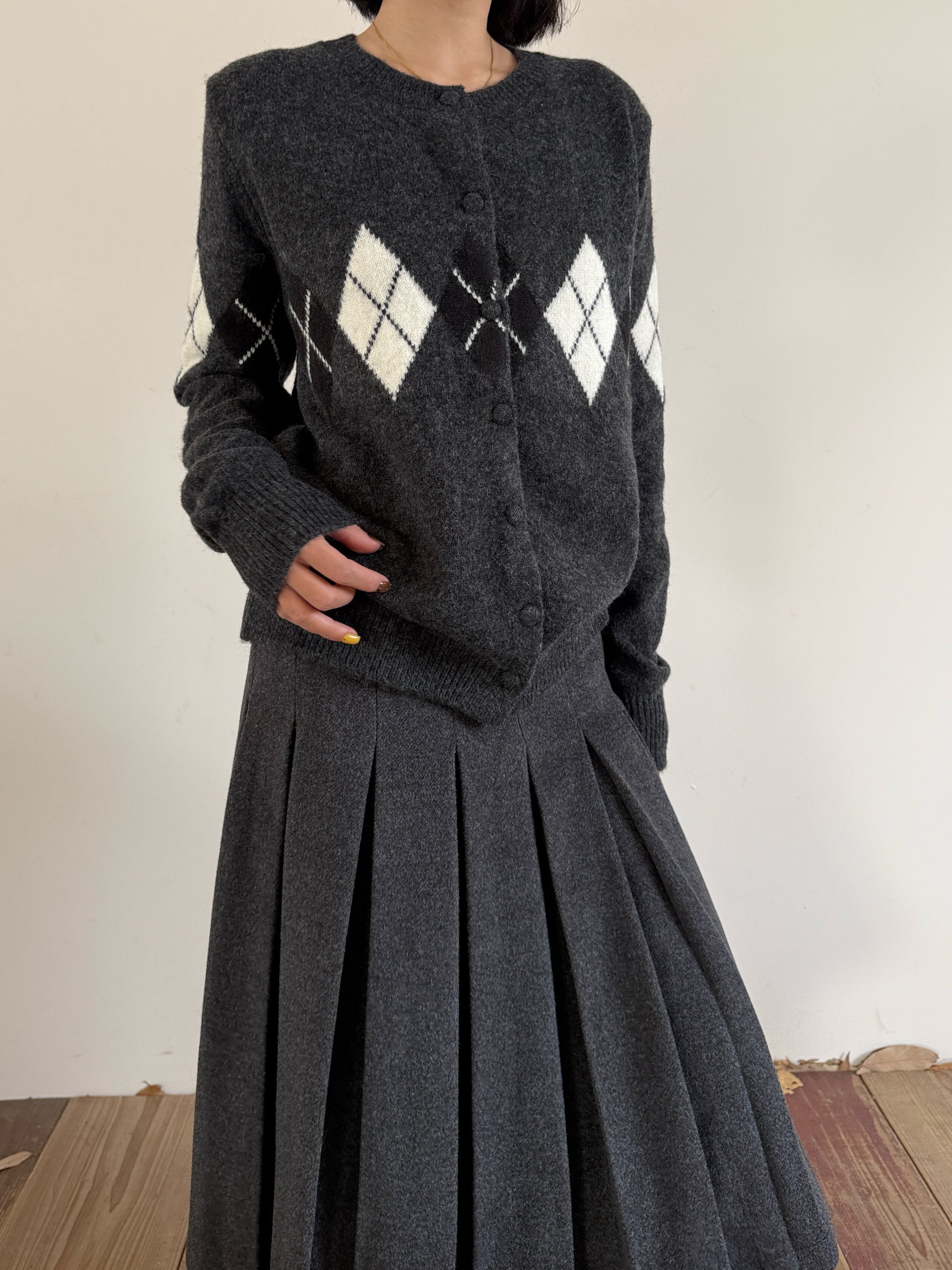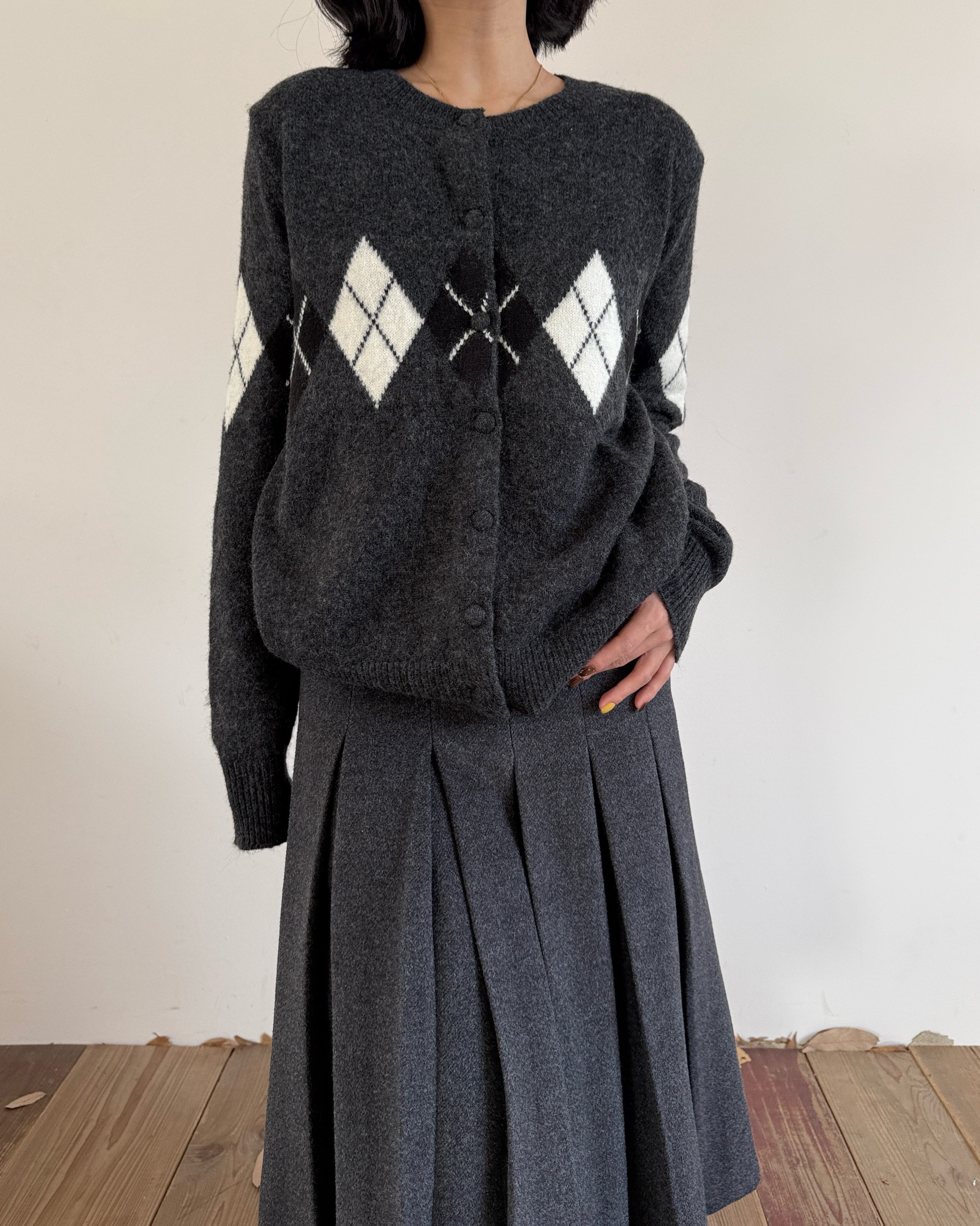 洗練されたデザインのdiamond knit cardiganは、ダイヤモンド模様が魅力的なアイテムです。柔らかな素材感が心地よく、肌触りも抜群。カジュアルやフォーマルを問わず、幅広いシーンで活躍すること間違いなしです!シンプルなトップスやワンピースに合わせることで、エレガントなスタイルが楽しめます。