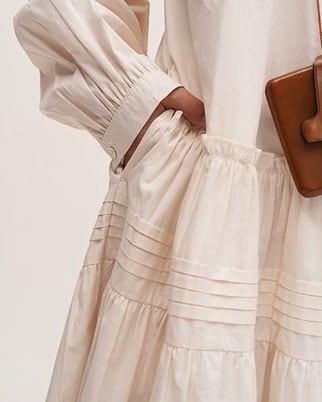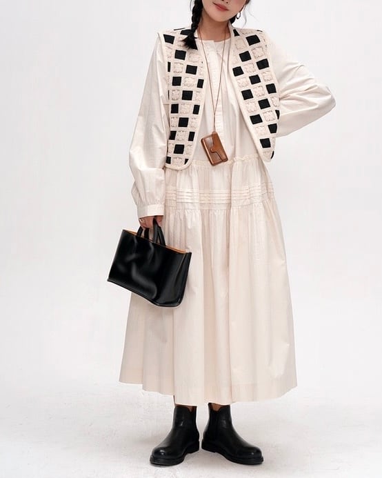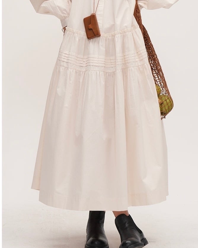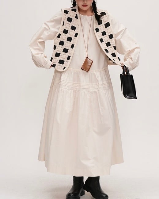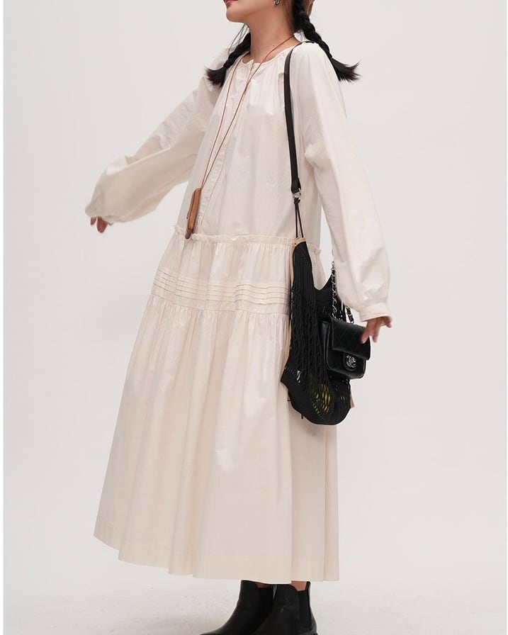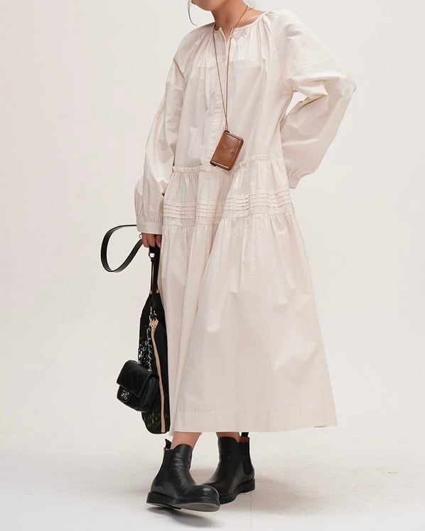 シンプルでありながらも女性らしいAラインのシルエットが魅力のワンピースです。ラウンドネックのデザインは、首元を華やかに演出し、着るだけでおしゃれ度がアップします。